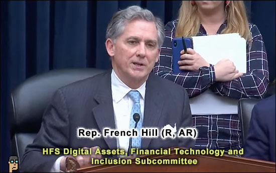 Today’s inaugural hearing of the Digital Assets, Financial Technology and Inclusion Subcommittee titled, “Coincidence or Coordinated? The Administration’s Attack on the Digital Asset Ecosystem,” took place under the auspices of the House Financial Services Committee and Subcommittee Chair Rep. French Hill (R, AR).
